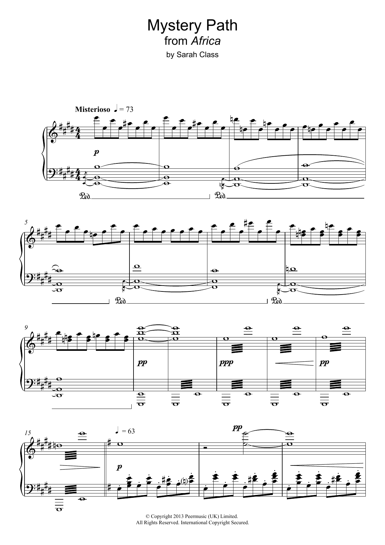 Download or print Sarah Class Mystery Path sheet music, chords and digital score arranged for Piano Solo. This Film/TV score includes 2 page(s).