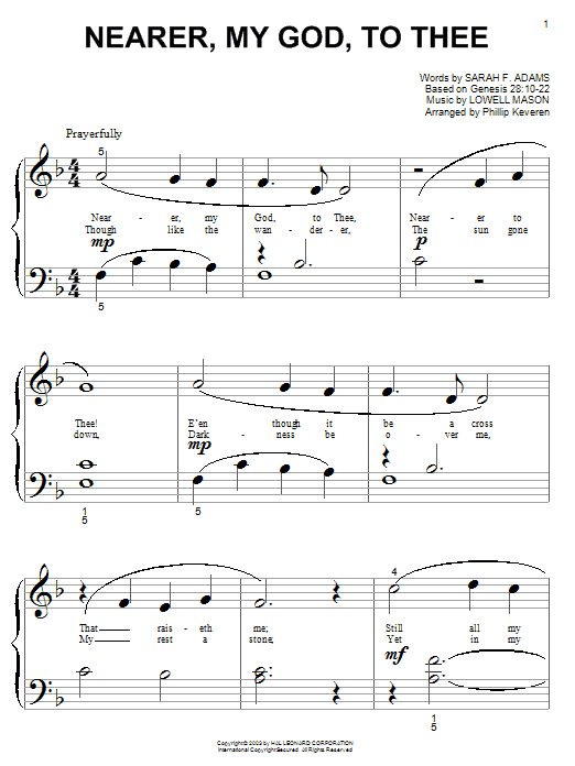 Download or print Lowell Mason Nearer, My God, To Thee (arr. Phillip Keveren) sheet music, chords and digital score arranged for Beginning Piano Solo. This Christian score includes 2 page(s).