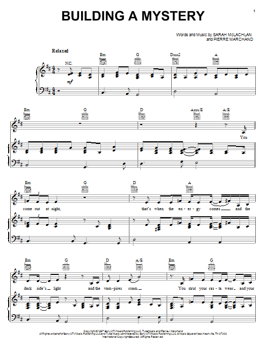 Download or print Sarah McLachlan Building A Mystery sheet music, chords and digital score arranged for Guitar Tab. This Pop score includes 9 page(s).