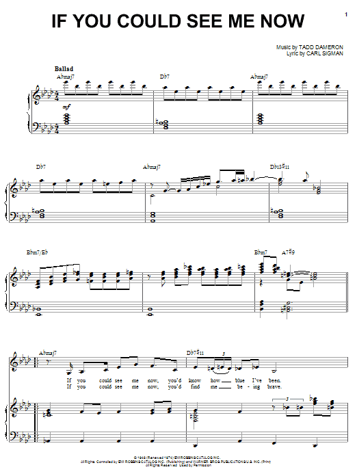 Download or print Sarah Vaughan If You Could See Me Now sheet music, chords and digital score arranged for Real Book – Melody & Chords. This Jazz score includes 1 page(s).
