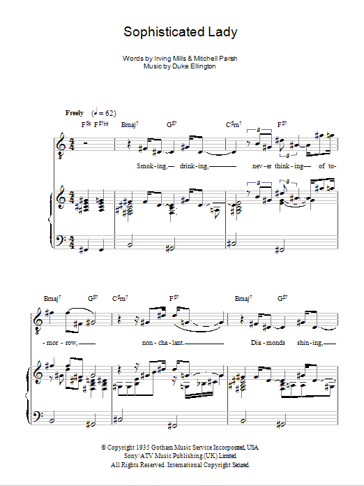 Download or print Sarah Vaughan Sophisticated Lady sheet music, chords and digital score arranged for Piano, Vocal & Guitar Chords. This Jazz score includes 7 page(s).