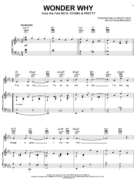 Download or print Sarah Vaughan Wonder Why sheet music, chords and digital score arranged for Piano, Vocal & Guitar Chords (Right-Hand Melody). This Standards score includes 3 page(s).