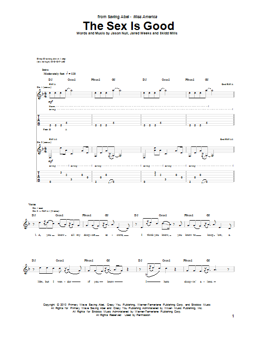Download or print Saving Abel The Sex Is Good sheet music, chords and digital score arranged for Guitar Tab. This Pop score includes 8 page(s).