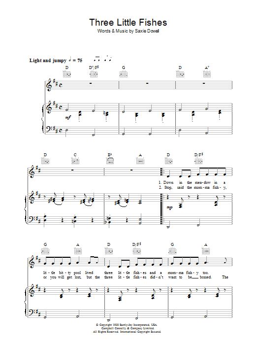 Download or print Saxie Dowell Three Little Fishes sheet music, chords and digital score arranged for Easy Piano. This Standards score includes 2 page(s).