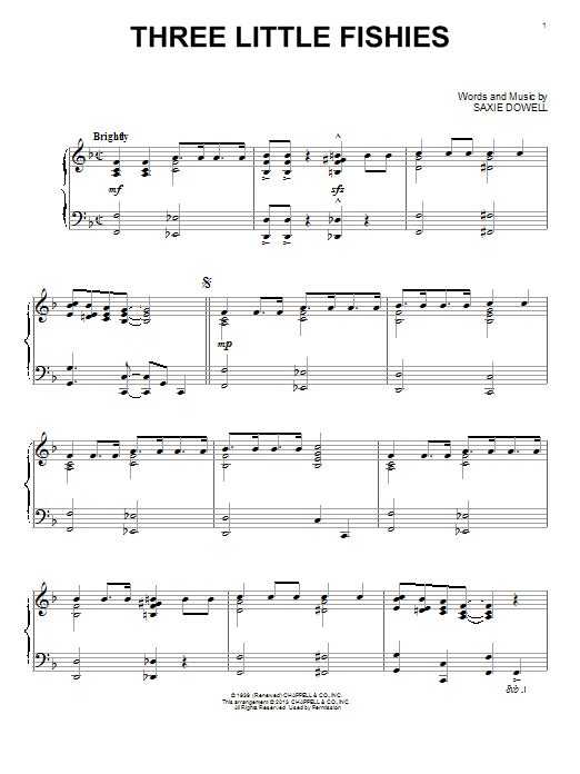Download or print Saxie Dowell Three Little Fishies sheet music, chords and digital score arranged for Easy Guitar Tab. This Children score includes 3 page(s).
