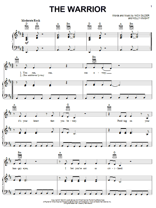 Download or print Scandal The Warrior sheet music, chords and digital score arranged for Piano, Vocal & Guitar Chords (Right-Hand Melody). This Pop score includes 6 page(s).