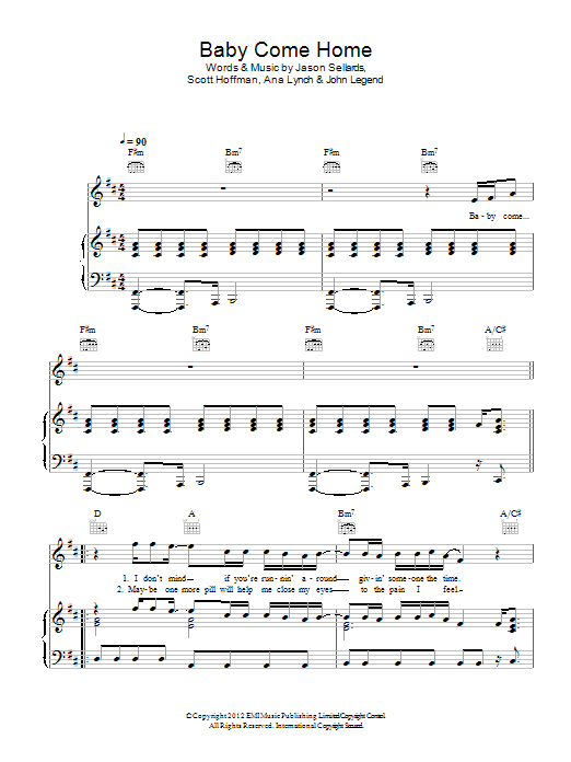 Download or print Scissor Sisters Baby Come Home sheet music, chords and digital score arranged for Piano, Vocal & Guitar Chords. This Pop score includes 5 page(s).