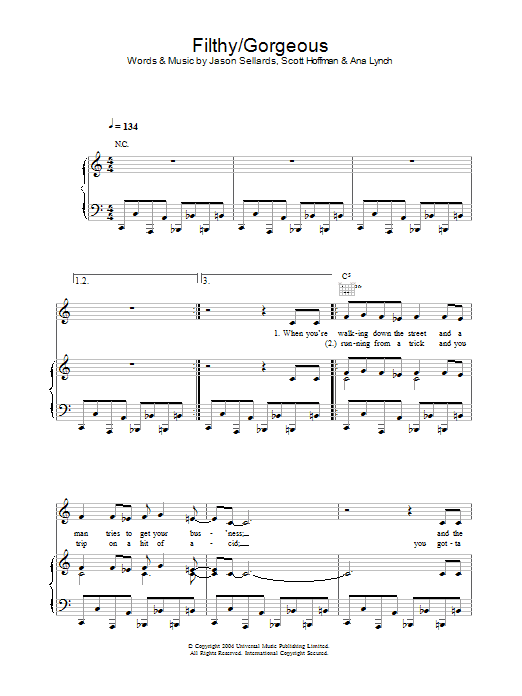 Download or print Scissor Sisters Filthy/Gorgeous sheet music, chords and digital score arranged for Piano, Vocal & Guitar Chords. This Pop score includes 6 page(s).