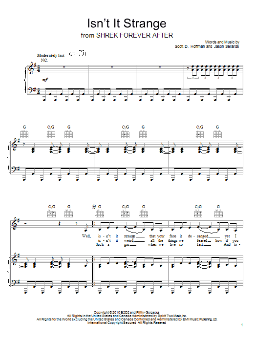 Download or print Scissor Sisters Isn't It Strange sheet music, chords and digital score arranged for Piano, Vocal & Guitar Chords (Right-Hand Melody). This Film/TV score includes 5 page(s).