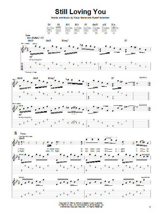 Download or print Scorpions Still Loving You sheet music, chords and digital score arranged for Guitar Tab (Single Guitar). This Pop score includes 10 page(s).