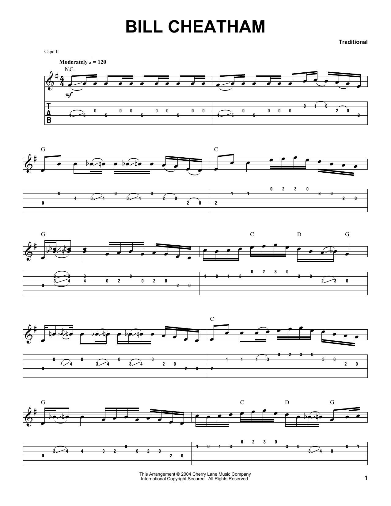 Download or print Scott Fore Bill Cheatham sheet music, chords and digital score arranged for Solo Guitar. This Folk score includes 7 page(s).