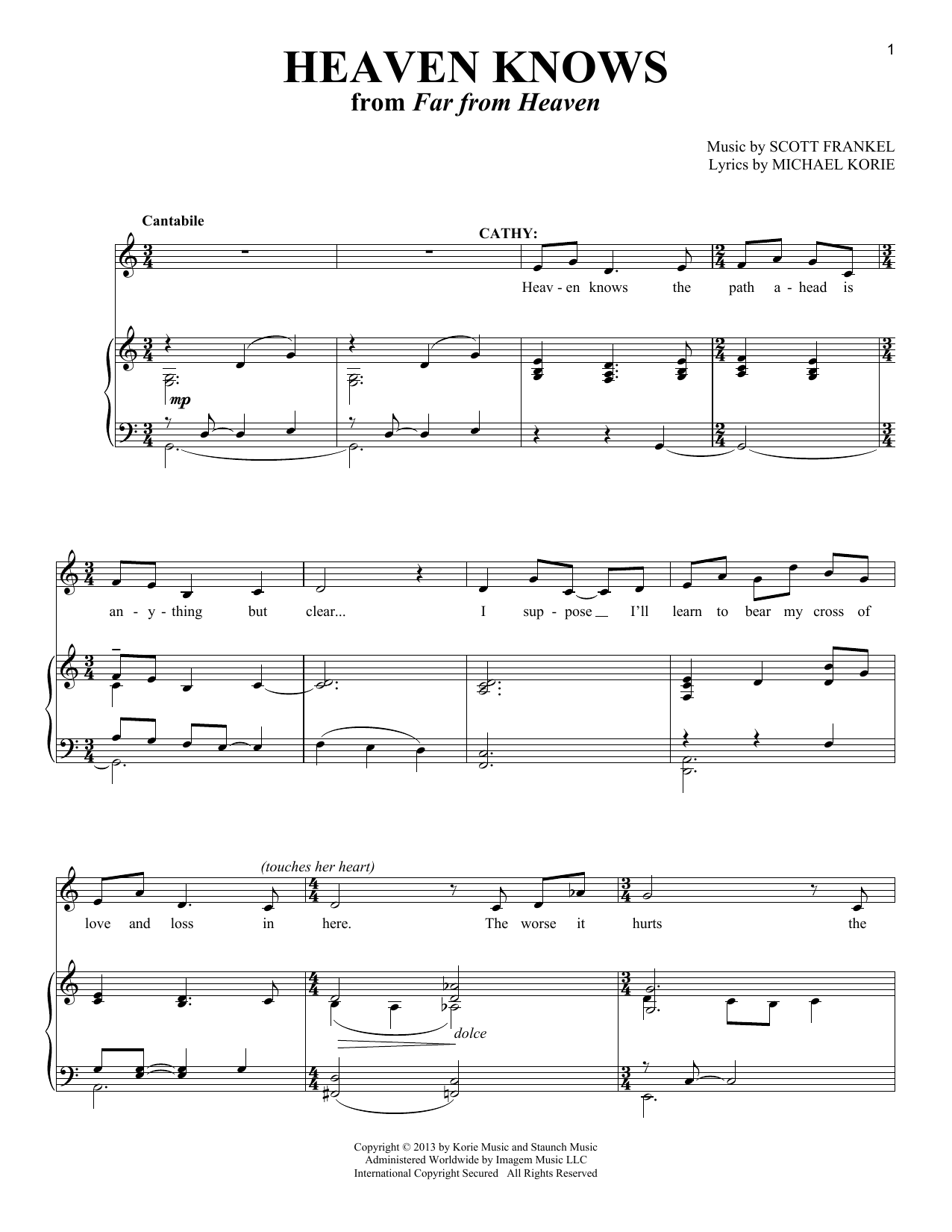 Download or print Scott Frankel Heaven Knows sheet music, chords and digital score arranged for Piano & Vocal. This Musical/Show score includes 4 page(s).