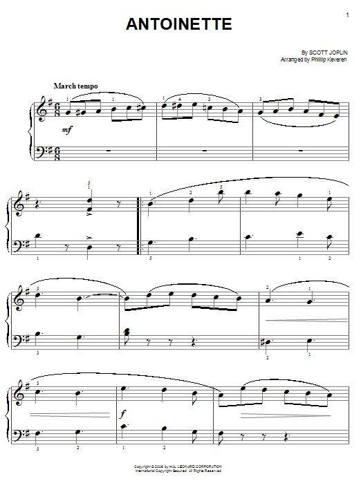 Download or print Scott Joplin Antoinette (arr. Phillip Keveren) sheet music, chords and digital score arranged for Easy Piano. This Classical score includes 3 page(s).
