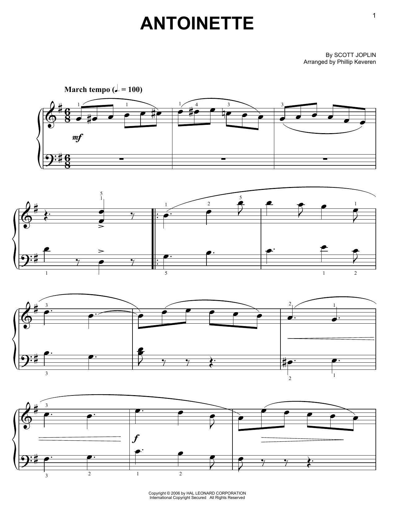 Download or print Scott Joplin Antoinette sheet music, chords and digital score arranged for Easy Piano. This Pop score includes 3 page(s).