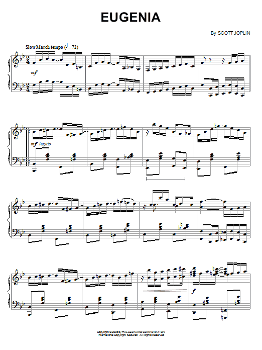 Download or print Scott Joplin Eugenia sheet music, chords and digital score arranged for Piano Solo. This Jazz score includes 6 page(s).