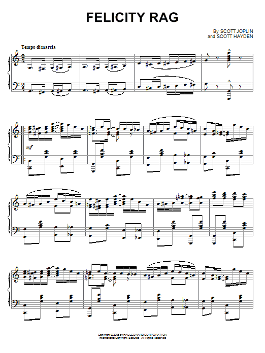 Download or print Scott Joplin Felicity Rag sheet music, chords and digital score arranged for Piano Solo. This Jazz score includes 4 page(s).