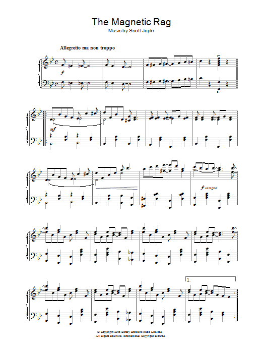 Download or print Scott Joplin Magnetic Rag sheet music, chords and digital score arranged for Piano Solo. This Jazz score includes 5 page(s).