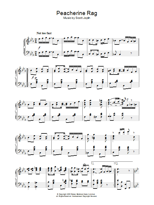 Download or print Scott Joplin Peacherine Rag sheet music, chords and digital score arranged for Piano Solo. This Ragtime score includes 4 page(s).