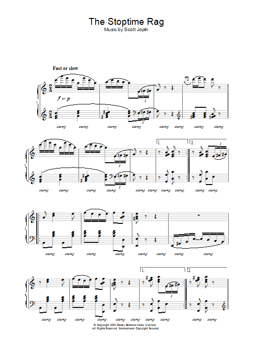 Download or print Scott Joplin Stoptime Rag sheet music, chords and digital score arranged for Piano Solo. This Ragtime score includes 4 page(s).