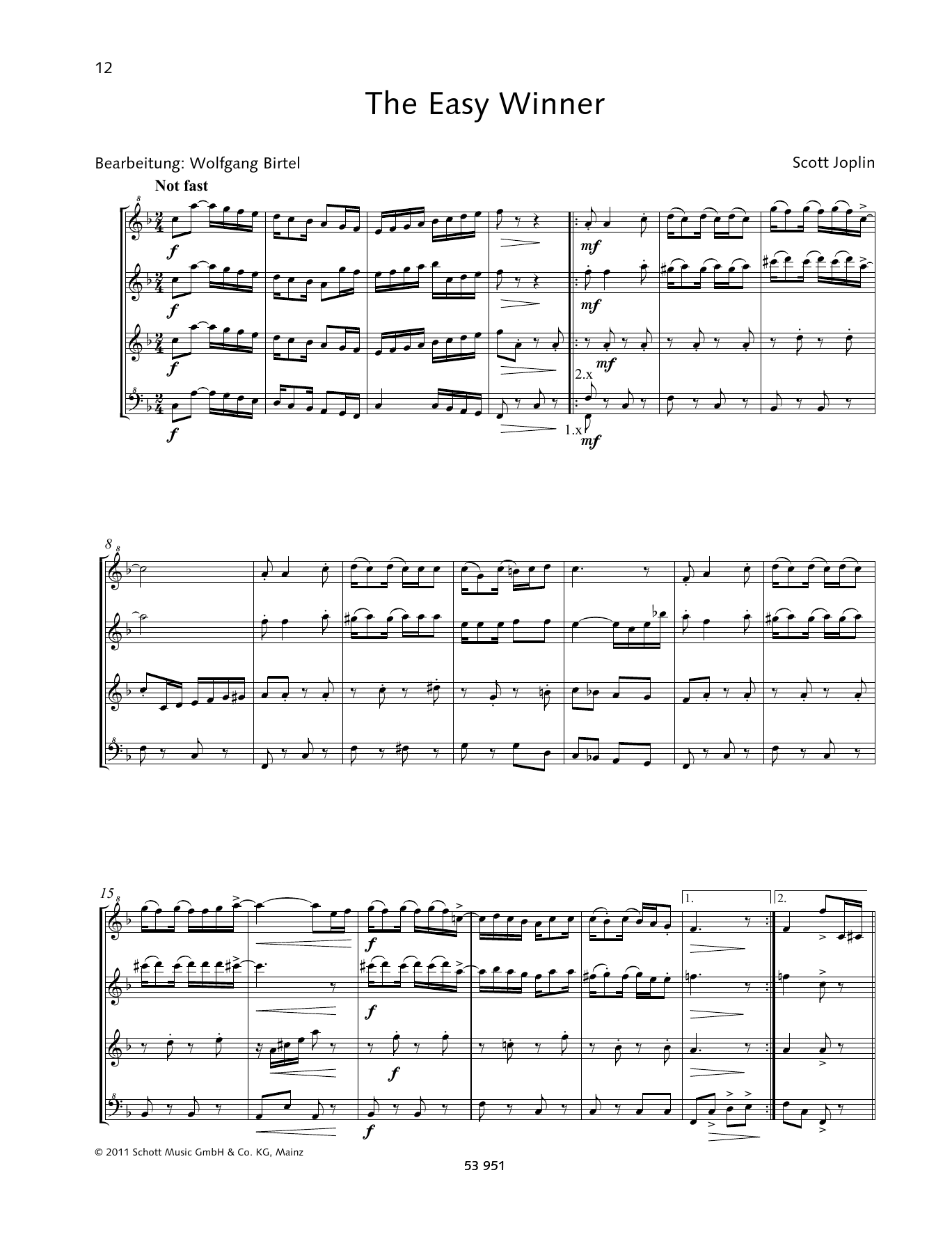Download or print Scott Joplin The Easy Winner sheet music, chords and digital score arranged for Woodwind Ensemble. This Jazz score includes 12 page(s).