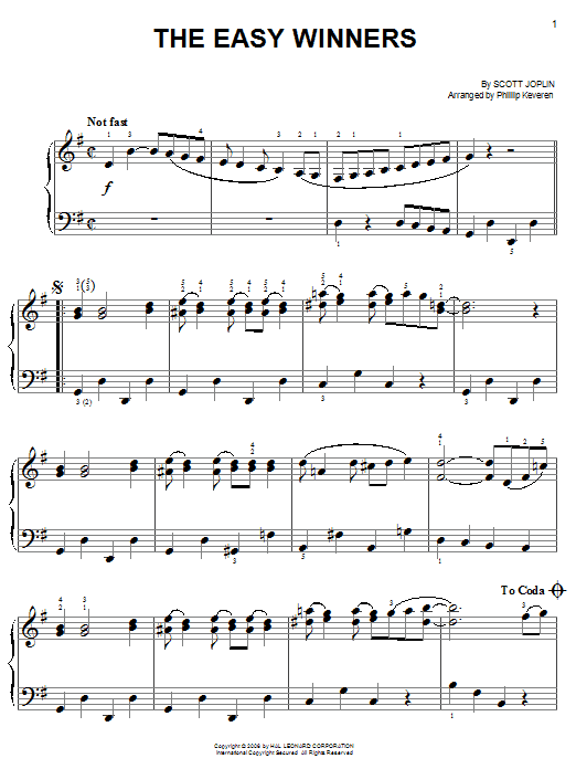 Download or print Scott Joplin The Easy Winners (arr. Phillip Keveren) sheet music, chords and digital score arranged for Easy Piano. This Children score includes 3 page(s).