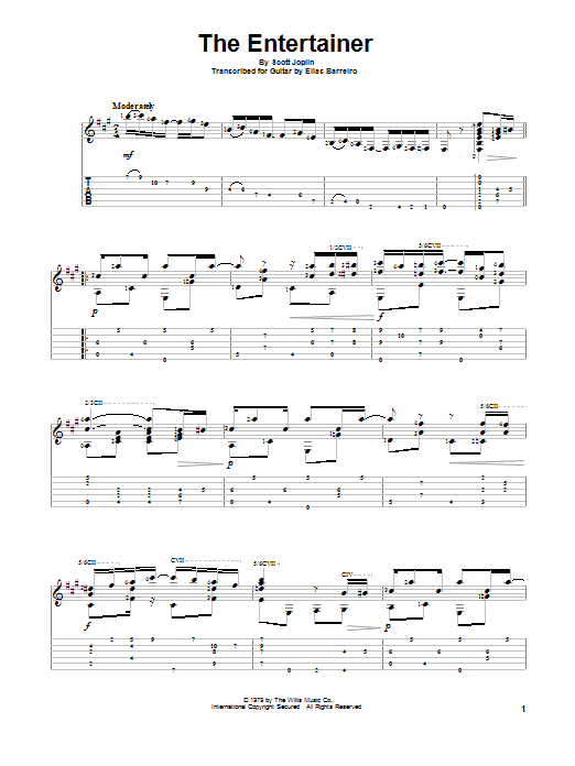 Download or print Elias Barreiro The Entertainer sheet music, chords and digital score arranged for Solo Guitar. This Classical score includes 7 page(s).