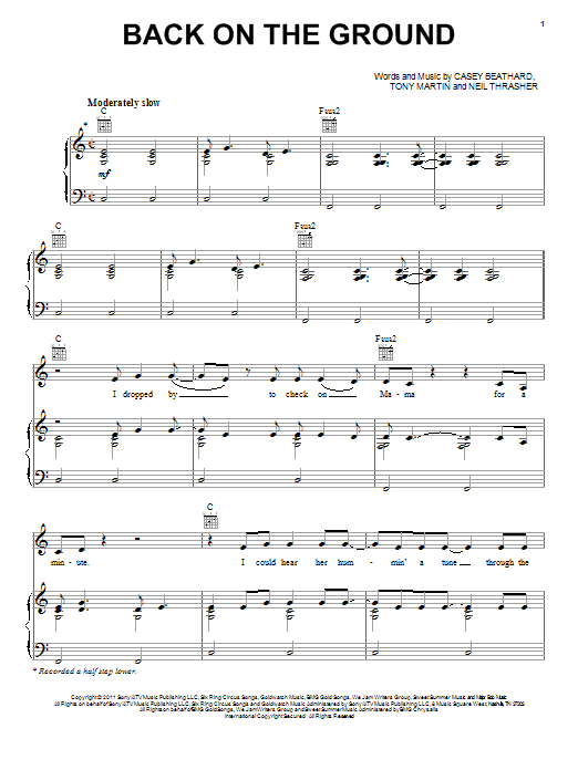 Download or print Scotty McCreery Back On The Ground sheet music, chords and digital score arranged for Piano, Vocal & Guitar Chords (Right-Hand Melody). This Country score includes 6 page(s).