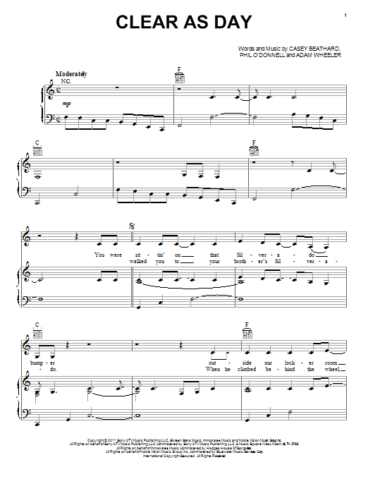 Download or print Scotty McCreery Clear As Day sheet music, chords and digital score arranged for Piano, Vocal & Guitar Chords (Right-Hand Melody). This Country score includes 6 page(s).