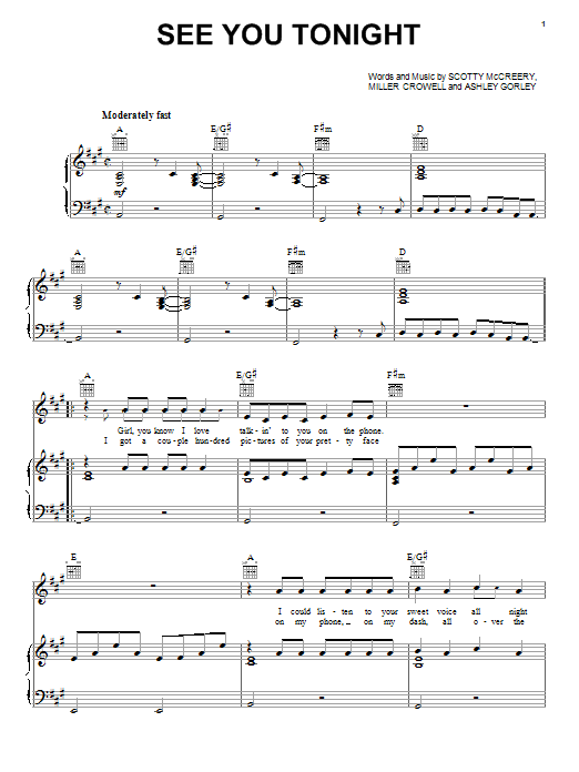Download or print Scotty McCreery See You Tonight sheet music, chords and digital score arranged for Piano, Vocal & Guitar Chords (Right-Hand Melody). This Country score includes 7 page(s).