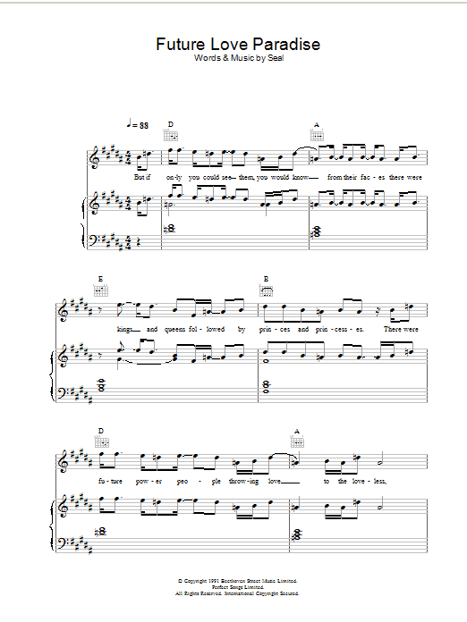 Download or print Seal Future Love Paradise sheet music, chords and digital score arranged for Piano, Vocal & Guitar Chords. This Pop score includes 8 page(s).