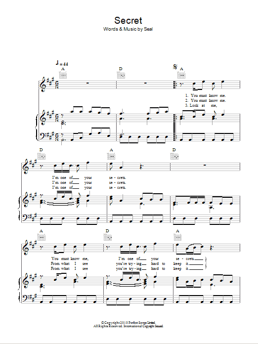 Download or print Seal Secret sheet music, chords and digital score arranged for Piano, Vocal & Guitar Chords. This Love score includes 4 page(s).