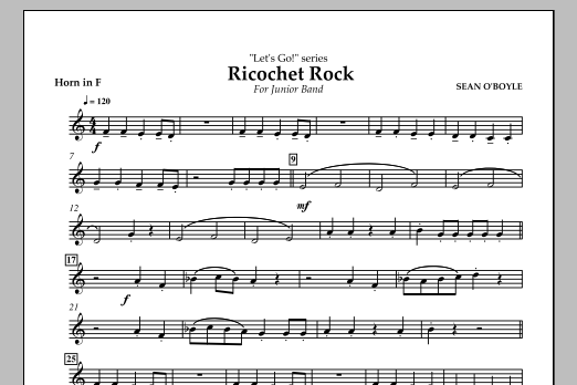Download or print Sean O'Boyle Ricochet Rock - Horn in F sheet music, chords and digital score arranged for Concert Band. This Contemporary score includes 1 page(s).