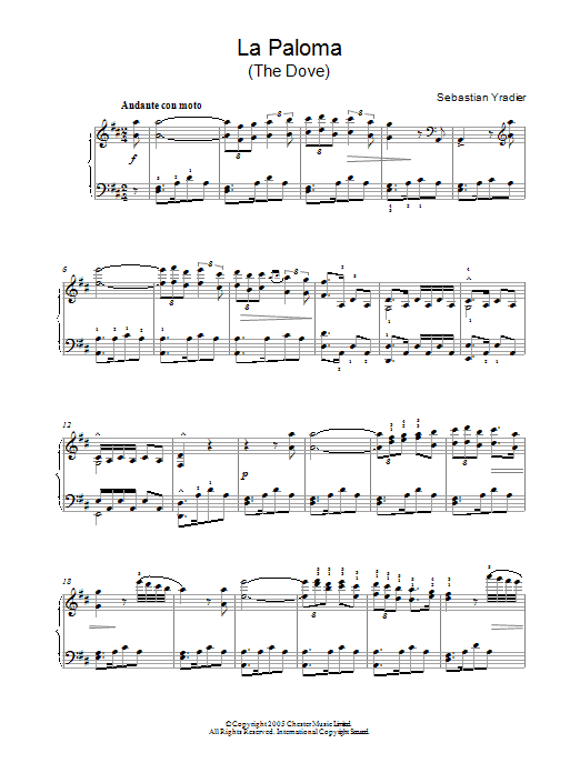 Download or print Sebastien Yradier La Paloma sheet music, chords and digital score arranged for Piano Solo. This Folk score includes 3 page(s).