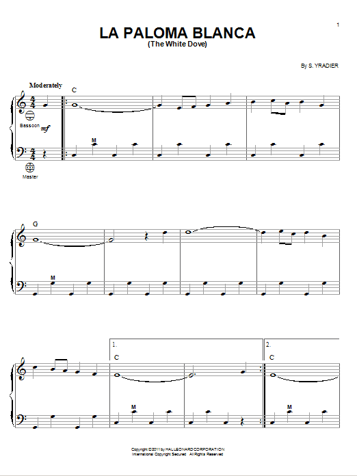 Quick facts La Paloma Blanca (The White Dove) about digital sheet music