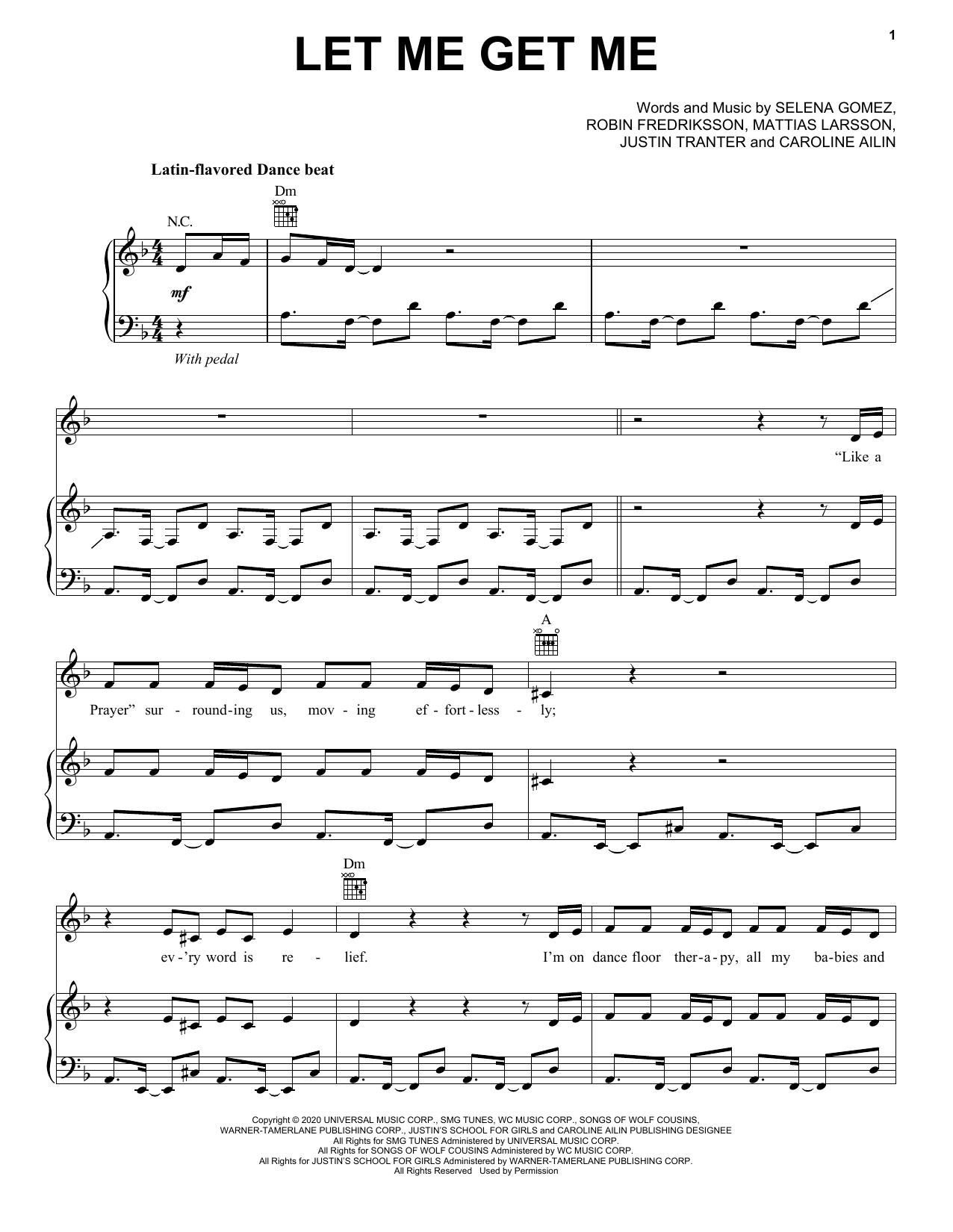 Download or print Selena Gomez Let Me Get Me sheet music, chords and digital score arranged for Piano, Vocal & Guitar Chords (Right-Hand Melody). This Pop score includes 6 page(s).