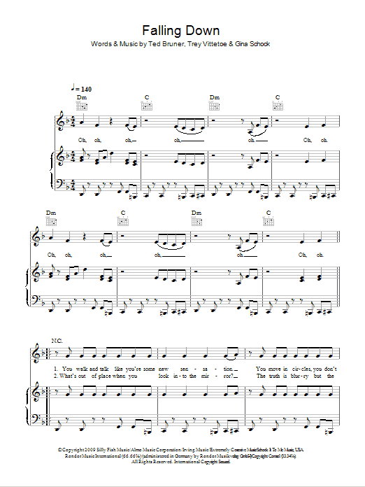 Download or print Selena Gomez & The Scene Falling Down sheet music, chords and digital score arranged for Piano, Vocal & Guitar Chords. This Pop score includes 5 page(s).