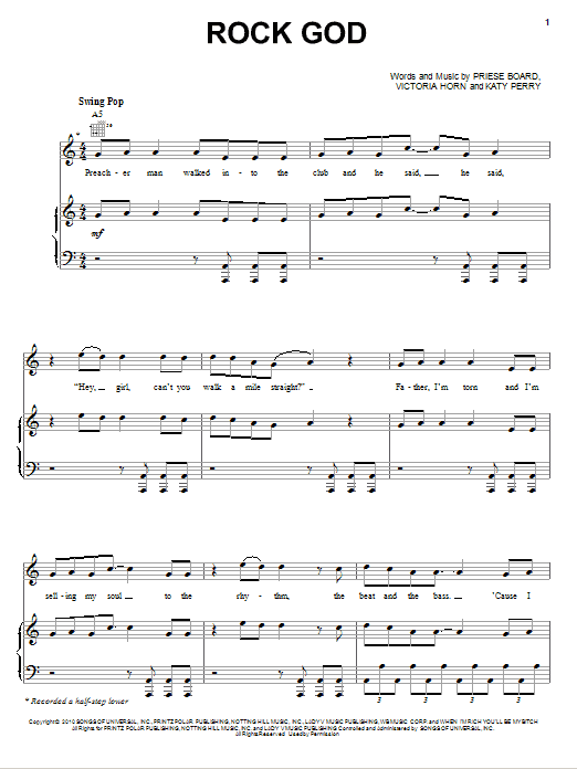 Download or print Selena Gomez & The Scene Rock God sheet music, chords and digital score arranged for Piano, Vocal & Guitar Chords (Right-Hand Melody). This Pop score includes 7 page(s).