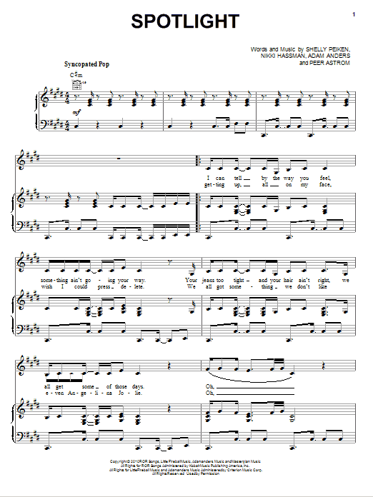 Download or print Selena Gomez & The Scene Spotlight sheet music, chords and digital score arranged for Piano, Vocal & Guitar Chords (Right-Hand Melody). This Pop score includes 7 page(s).