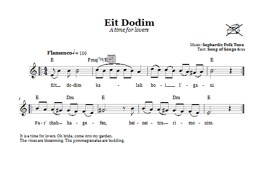 Download or print Sephardic Folk Tune Eit Dodim (A Time For Lovers) sheet music, chords and digital score arranged for Lead Sheet / Fake Book. This Traditional score includes 1 page(s).