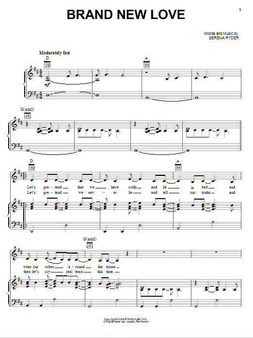 Download or print Serena Ryder Brand New Love sheet music, chords and digital score arranged for Piano, Vocal & Guitar Chords (Right-Hand Melody). This Pop score includes 7 page(s).