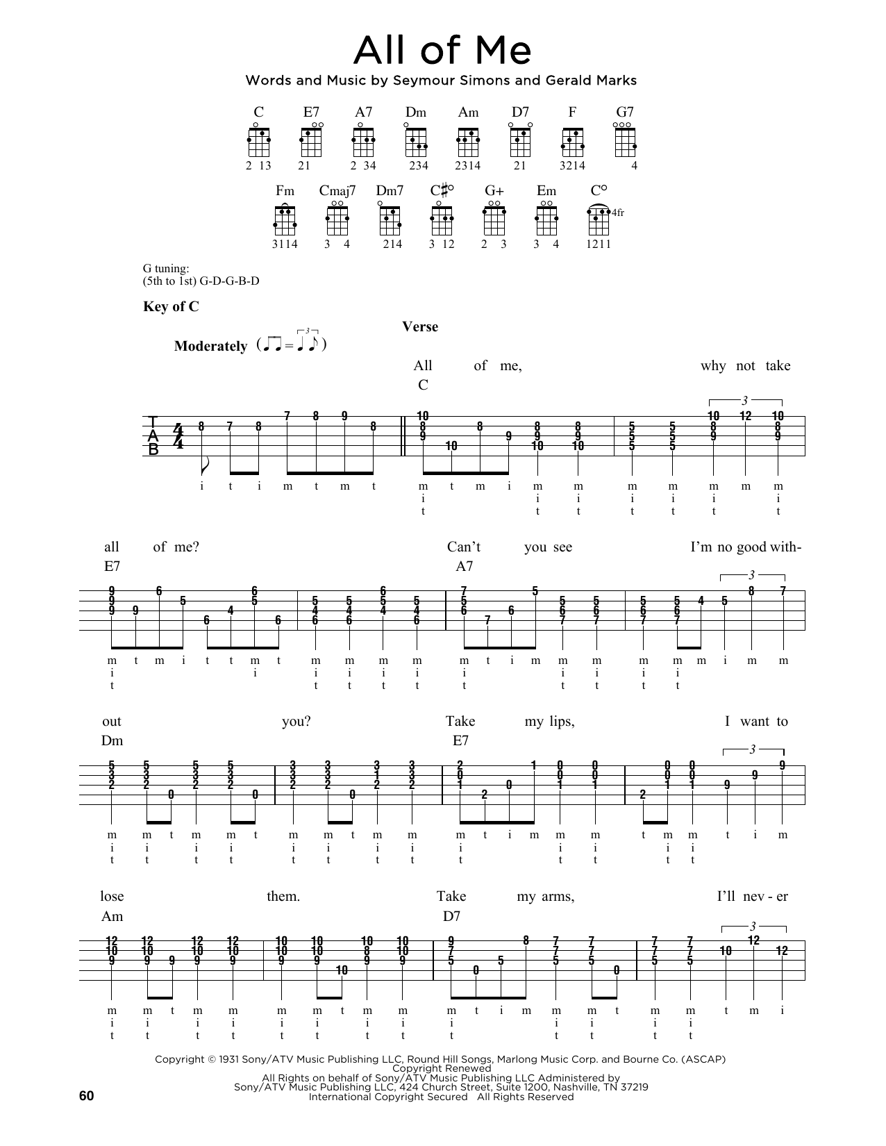 Download or print Seymour Simons All Of Me sheet music, chords and digital score arranged for Easy Piano. This Jazz score includes 3 page(s).