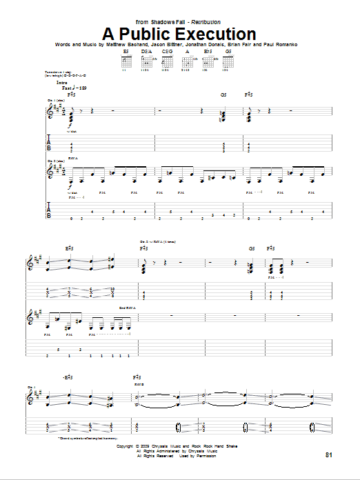 Download or print Shadows Fall A Public Execution sheet music, chords and digital score arranged for Guitar Tab. This Metal score includes 15 page(s).