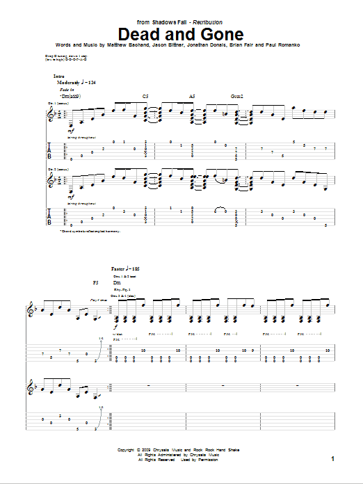 Download or print Shadows Fall Dead And Gone sheet music, chords and digital score arranged for Guitar Tab. This Metal score includes 15 page(s).