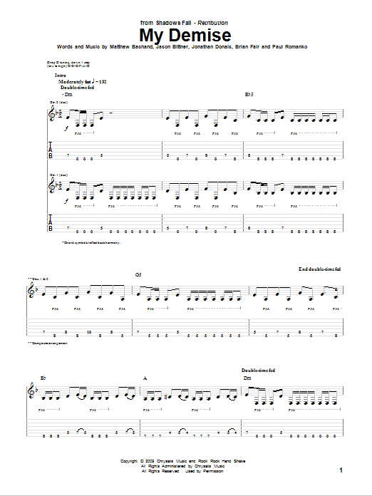 Download or print Shadows Fall My Demise sheet music, chords and digital score arranged for Guitar Tab. This Metal score includes 15 page(s).