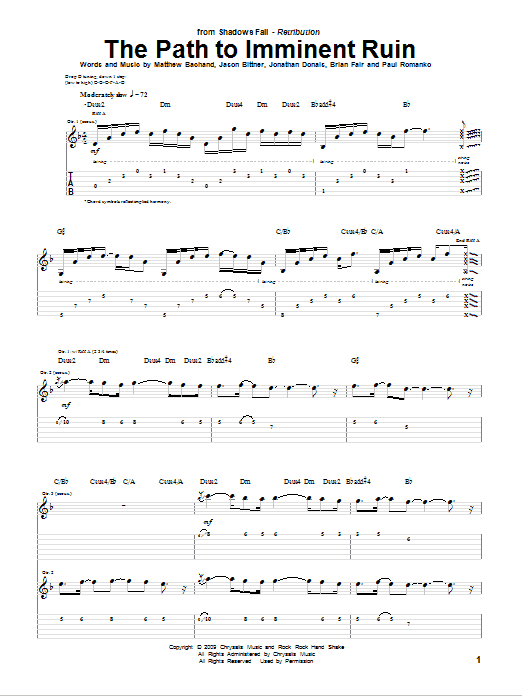 Download or print Shadows Fall The Path To Imminent Ruin sheet music, chords and digital score arranged for Guitar Tab. This Metal score includes 4 page(s).
