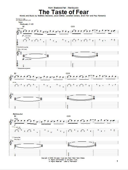 Download or print Shadows Fall The Taste Of Fear sheet music, chords and digital score arranged for Guitar Tab. This Metal score includes 8 page(s).