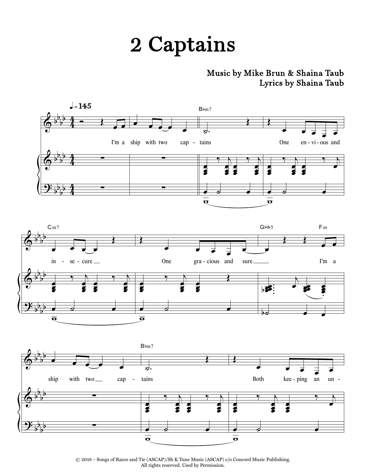 Download or print Shaina Taub 2 Captains sheet music, chords and digital score arranged for Piano & Vocal. This Folk score includes 8 page(s).