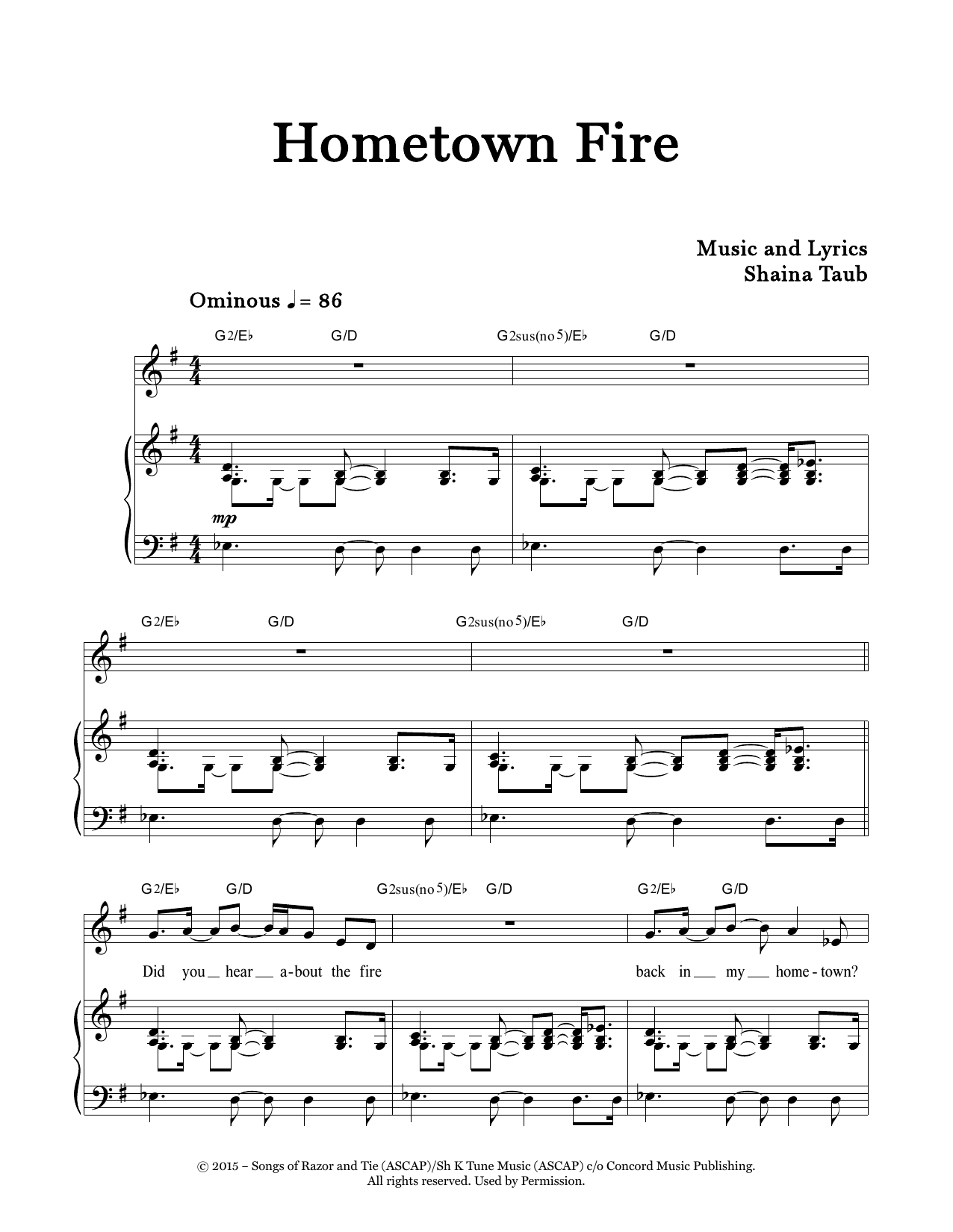 Download or print Shaina Taub Hometown Fire sheet music, chords and digital score arranged for Piano & Vocal. This Folk score includes 8 page(s).