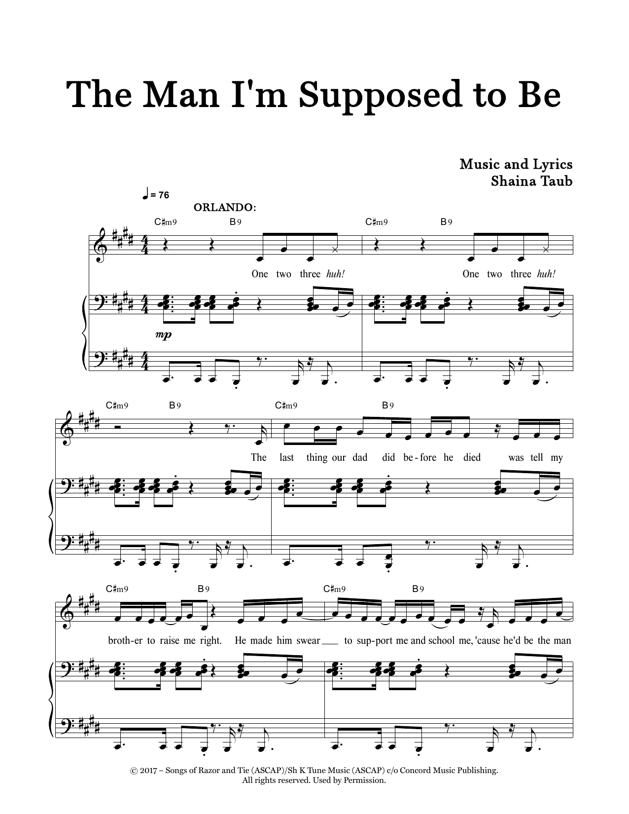 Download or print Shaina Taub The Man I'm Supposed To Be (from As You Like It) sheet music, chords and digital score arranged for Piano & Vocal. This Broadway score includes 8 page(s).