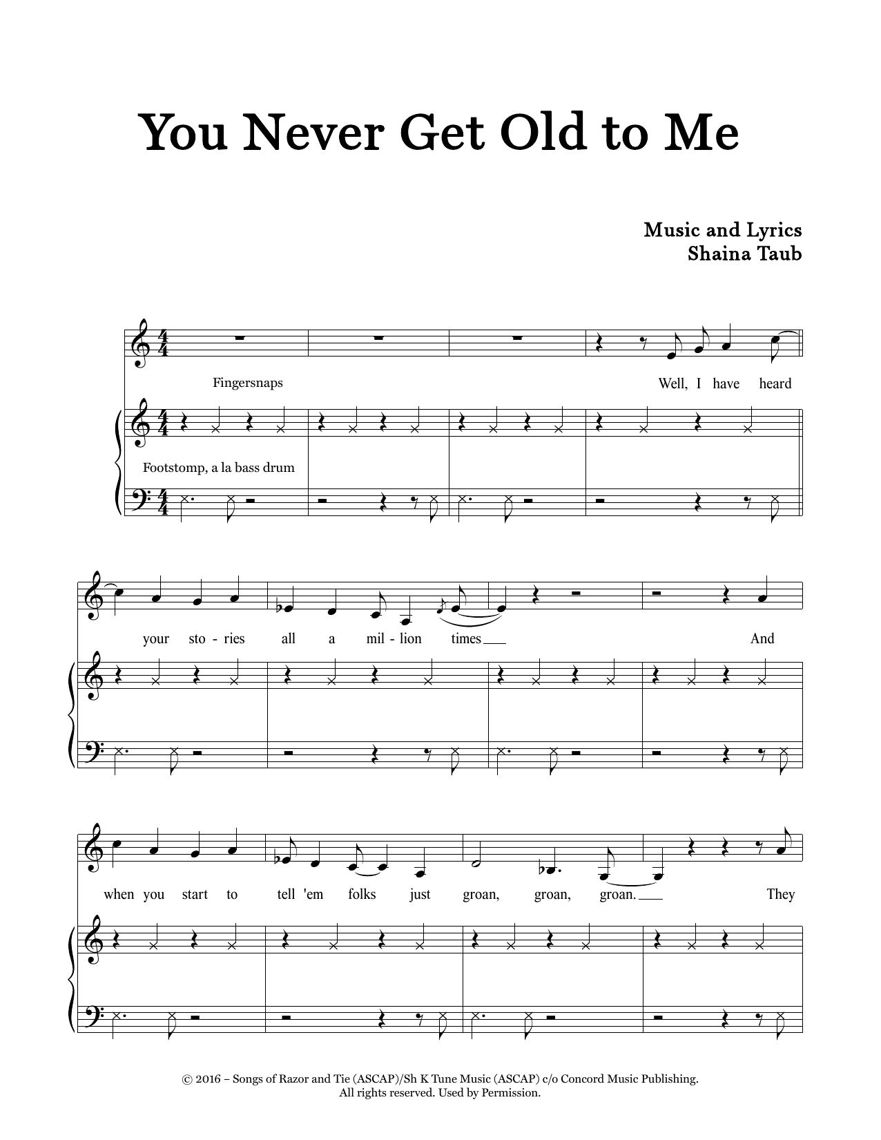 Download or print Shaina Taub You Never Get Old To Me sheet music, chords and digital score arranged for Piano & Vocal. This Pop score includes 7 page(s).